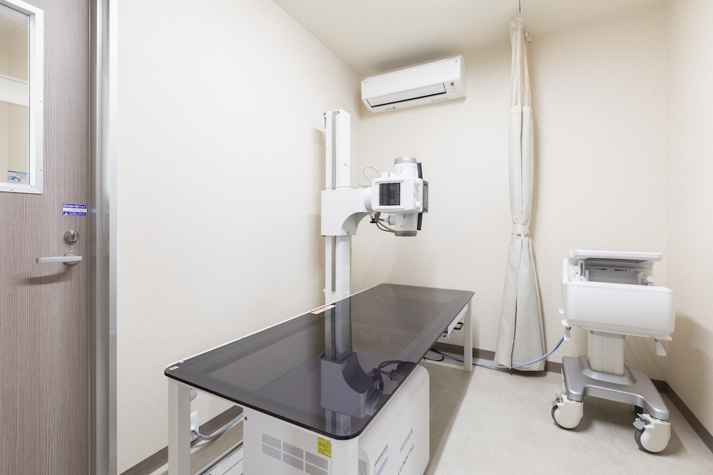 胸部・腹部などの画像を撮影できるデジタル式X線装置です。従来のフィルム式に比べ被ばく量が少なく、その場で画像を確認できるため、迅速な診断が可能となります。